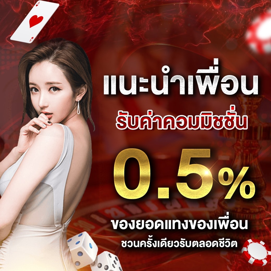 สำหรับนักพนันที่ชอบชวนเพื่อน เรามีโปรแนะนำเพื่อนที่ให้ค่าคอมมิชชั่น 5% จากยอดฝากของเพื่อนที่คุณชวนมา และเพื่อนของคุณก็จะได้รับโบนัสพิเศษ 50% แถมฟรีอีกด้วย